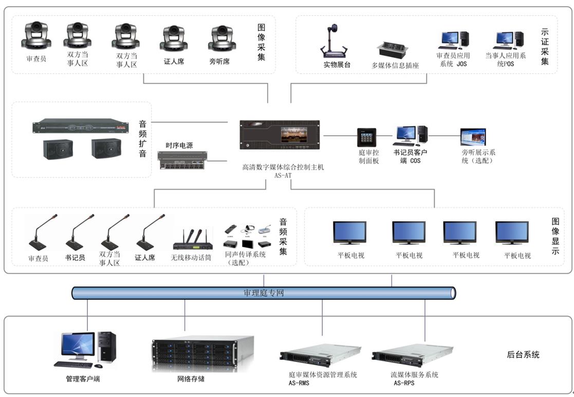 4、多媒体审理系统是一个案件信息中核心的数据采集部分,全部审理过程中的各类信息,都应在一个完善的多媒体审理系统中无遗漏的采集并记录下来。